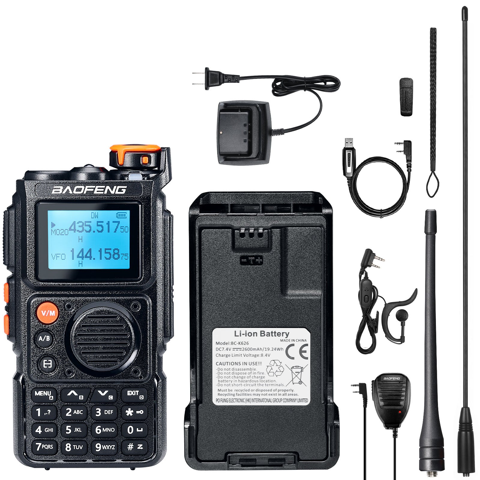 Powerful Tri-Band Transmission: Boasts a 5W power output, supporting tri-band transmission(VHF: 136-174MHz, 220-260MHz; UHF: 400-480MHz) and multi-band reception across a wide frequency range, including VHF, UHF, FM, Airband, 1.25M, 1M, and NOAA. Whether navigating urban areas or remote terrains, the K6 ensures clear and reliable communication. FCC ID: 2AJGM-NAK6