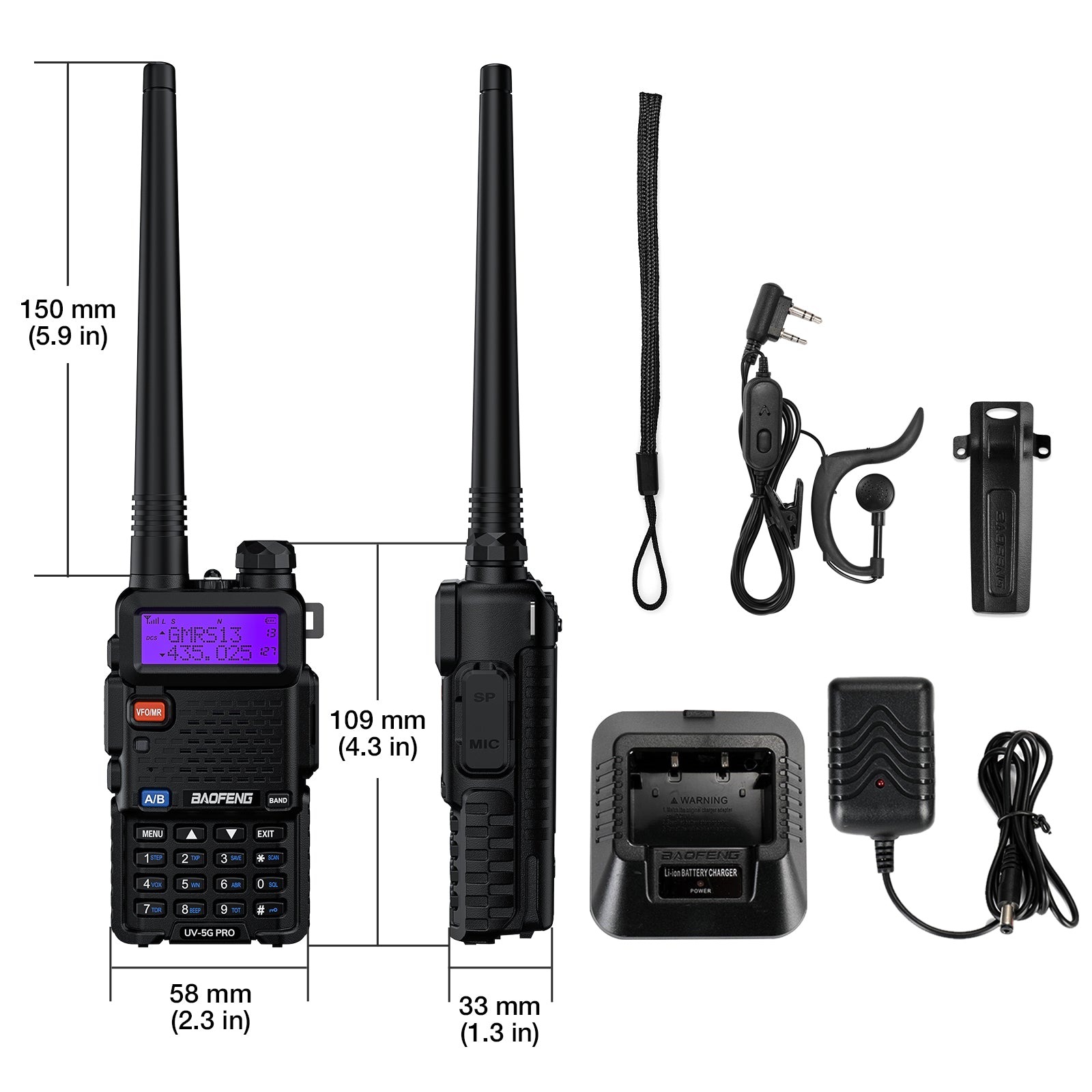 Compatible with 5R Series Accessories: The UV-5G PRO is designed to work seamlessly with accessories from the 5R series, ensuring you can enhance and customize your radio to suit your needs.FCC ID: 2AN62-UV5G.